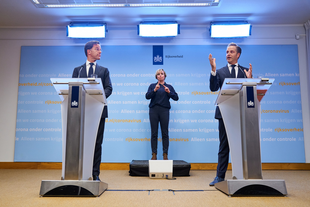 Persconferentie door premier mark rutte en minister hugo de jonge.